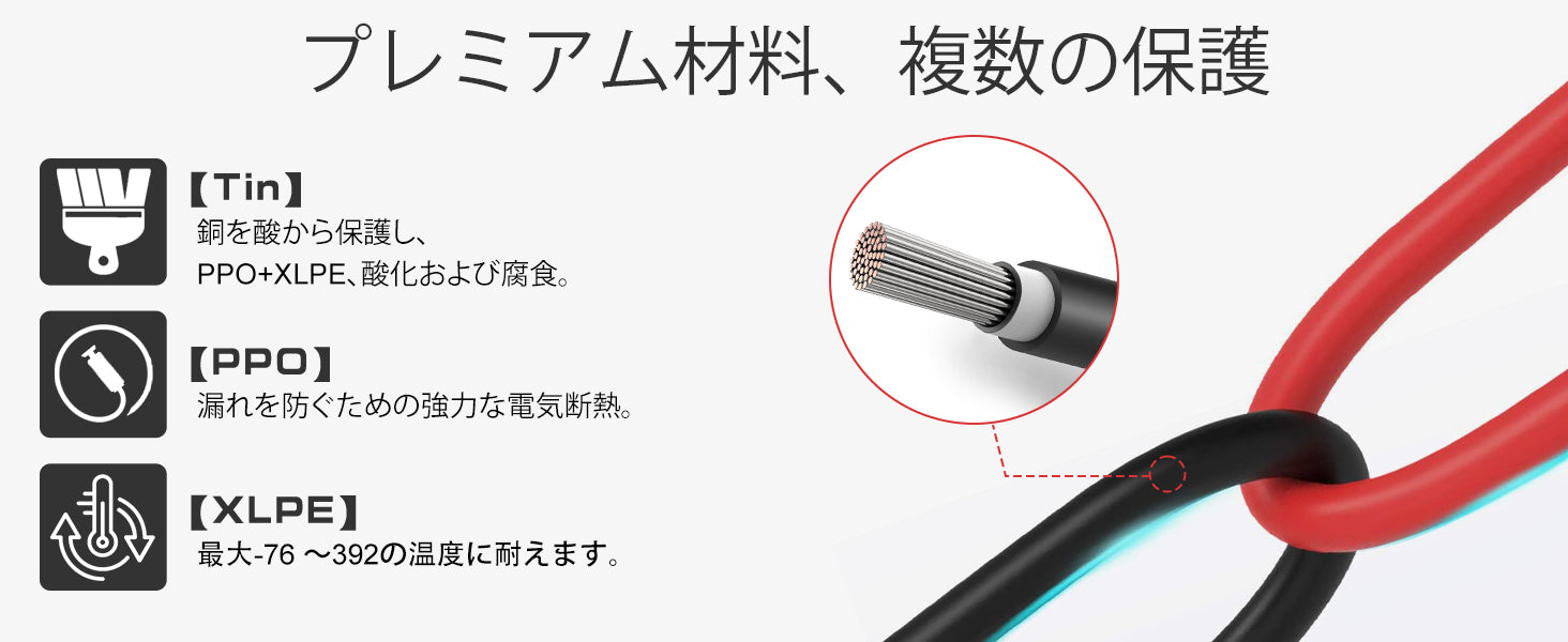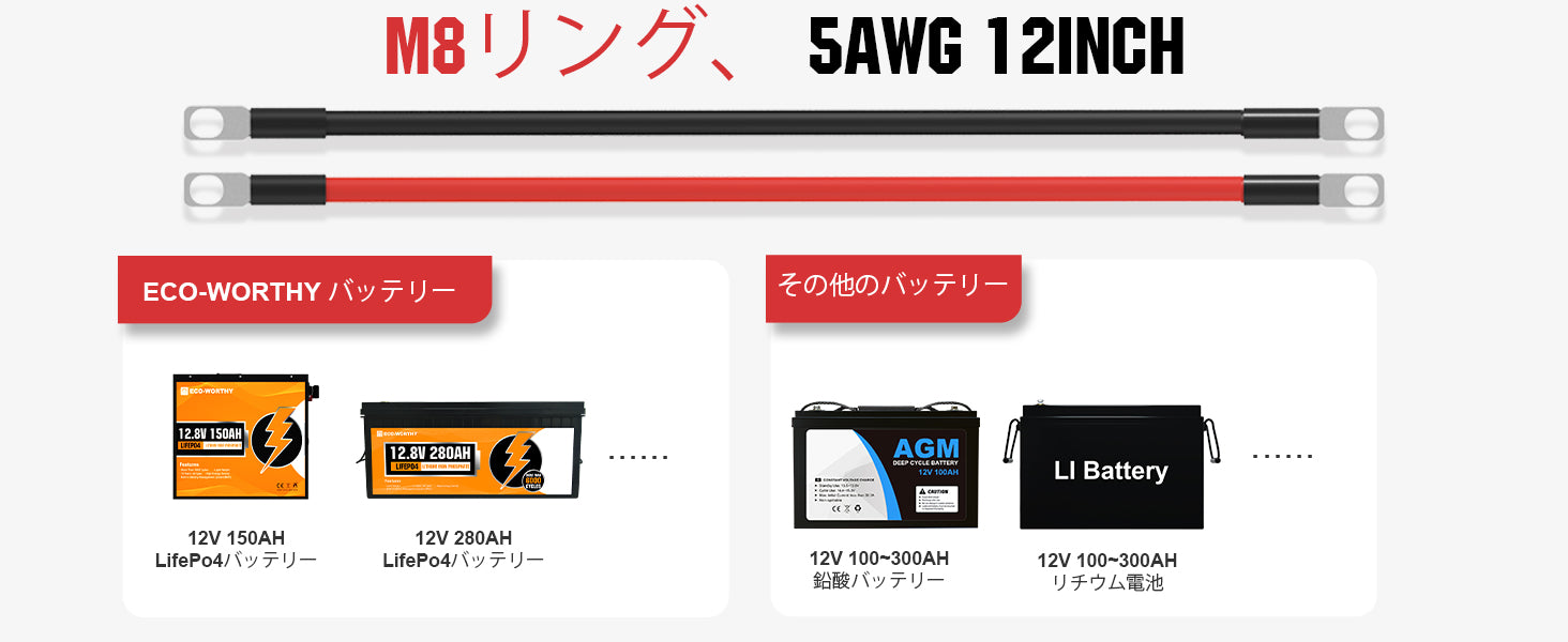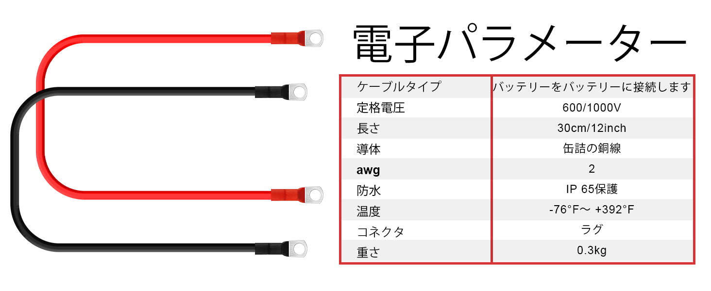 6AWG (16mm²) 13 インチバッテリー相互接続ケーブル
