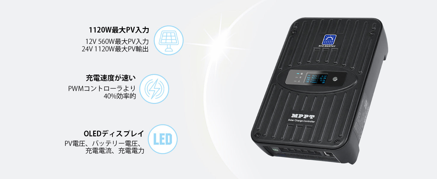 バッテリー電圧:12V/24V | 最大太陽光入力電力:560/1120W |
