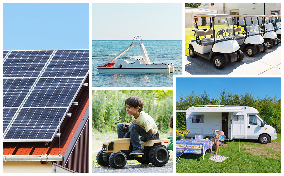 ·幅広い用途: 50AHリチウムバッテリーは、ゴルフカート、パワーホイール、トローリングモーター、RV、ツールトレーラー、キャラバン、マリン、キャンピングカー、電動スクーター、バックアップ電源、ソーラー、オフグリッドなどに適しています